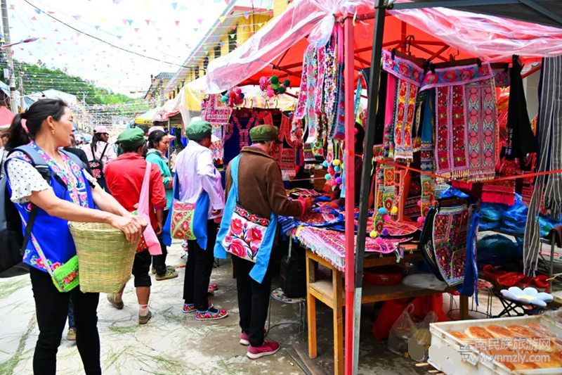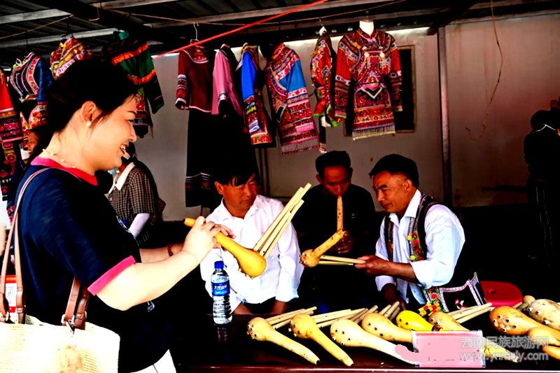 在演出結(jié)束后,鄉(xiāng)親們和來客們一起參加商品物資展銷暨科技文化展示、招商座談會、百人盛裝葫蘆笙舞、登山尋寶、彝繡展示與體驗、自駕游地索紅色文化旅游景區(qū)等活動。
