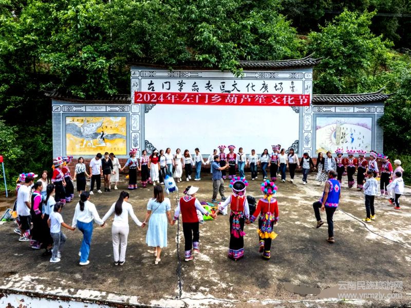 左門鄉(xiāng)位于姚安縣的西北部,距姚安縣城44公里。地處兩州(大理州、楚雄州)三縣(祥云縣、大姚縣、姚安縣)結(jié)合部,境內(nèi)山高坡陡箐深,在這塊神奇美麗的土地上,彝族人口眾多,全鄉(xiāng)有4400多位彝族,彝族占人口總數(shù)的98.1%,蘊育了豐富多彩的彝族文化,熱情好客的彝族人民,不論男女老幼唱歌跳舞與生俱來,因而使葫蘆笙舞這一原生態(tài)民族藝術(shù)得以發(fā)揚光大,也因此,蘊育了左門葫蘆笙文化節(jié)。左門鄉(xiāng)堅持一年一度舉辦葫蘆笙文化節(jié),旨在通過舉辦節(jié)日向外界展示全鄉(xiāng)干部群眾團結(jié)和諧、拼搏進取的精神風(fēng)貌,展現(xiàn)生態(tài)宜居、富裕殷實的幸福生活,從而進一步凝聚人氣、增強信心、開放合作的決心。