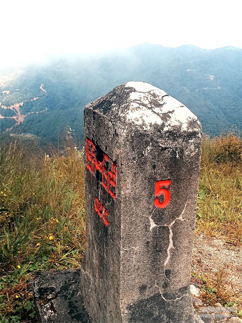 走完陡峭狹窄的林中小路,再越過一處懸崖,即到達雄踞姊妹山山巔的中緬北5號界碑。