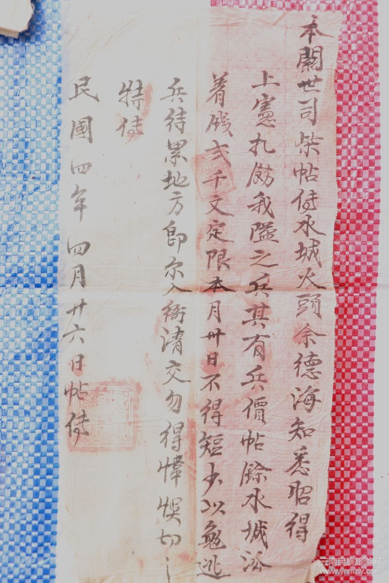 滇灘隘撫夷發(fā)給水城伙頭的公文