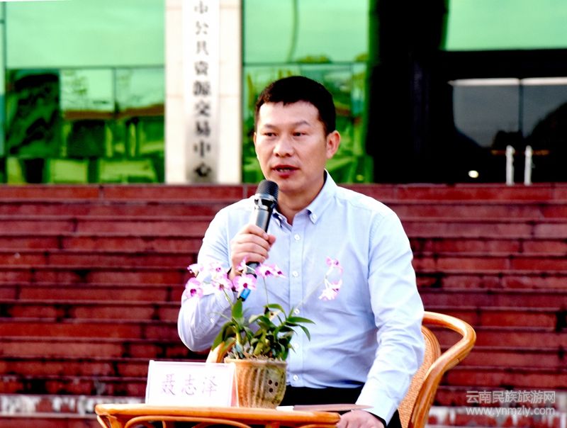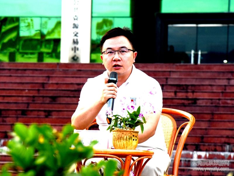 瑞麗市大通實業(yè)有限公司財務(wù)總監(jiān)聶志澤回答記者提問。(尹紹平攝影)