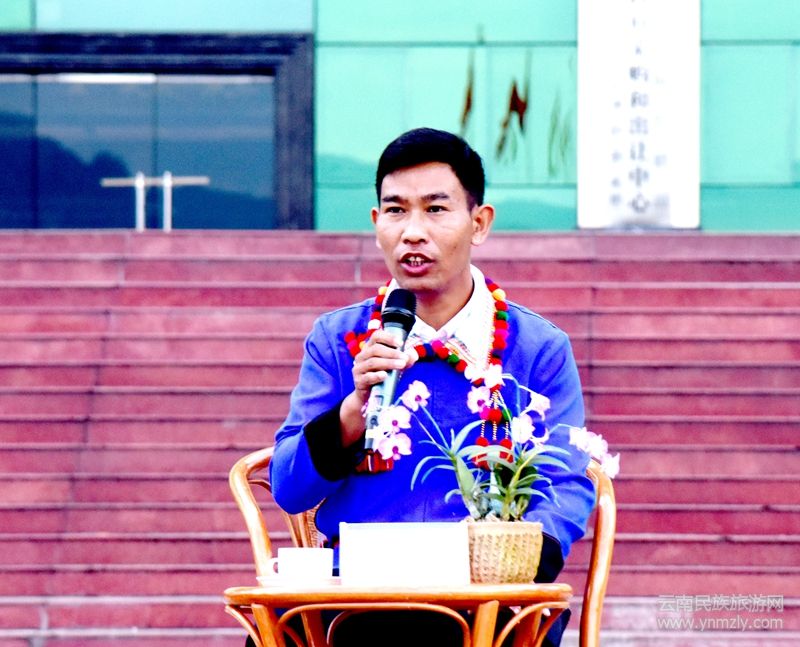 芒市三臺山德昂族鄉(xiāng)出冬爪村監(jiān)委主任趙臘退回答記者提問。(尹紹平攝影)
