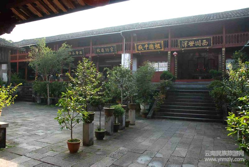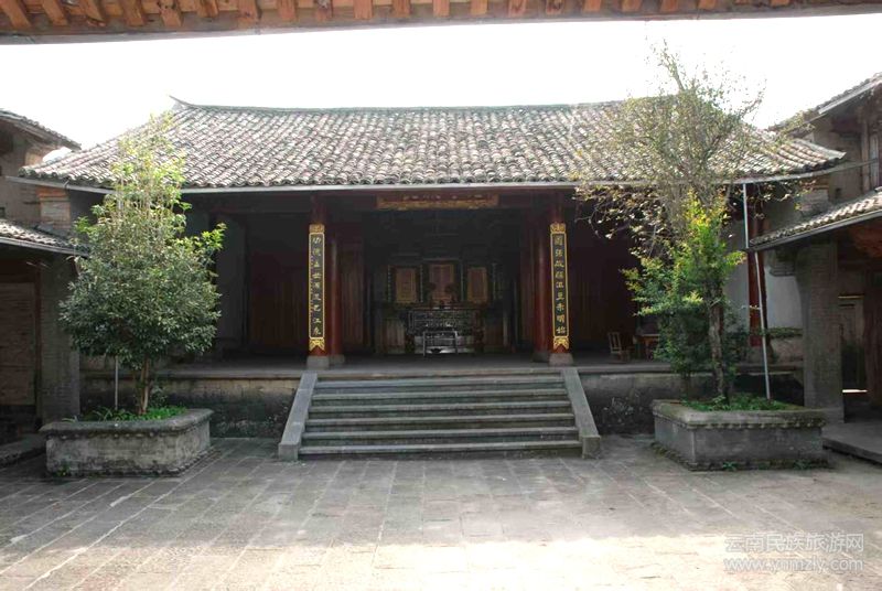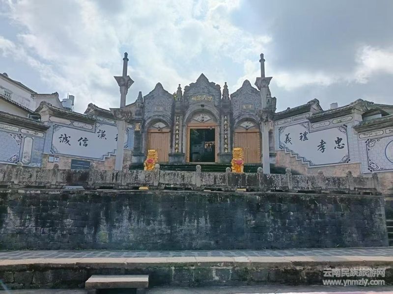3、李氏宗祠坐落于水碓村與劉氏宗祠之間,占地約四千平方米,背枕山坡,面向來鳳山,依山勢而建,雄偉壯觀。由正殿、兩廂樓、二門、前天井、大門及兩月宮門組成。從大路起步直達(dá)殿堂九重臺基,石磴一百余級。拾級而上至臺階轉(zhuǎn)折處為兩道石拱門。接著拾級而上至月臺,再上是雄偉的三開間牌樓式大門,穿過前天井進(jìn)入眼前的大殿及兩側(cè)三面回廊重檐歇山式廂樓。以布局宏偉、地勢高峻、視野寬闊、風(fēng)景優(yōu)美而著稱。李氏宗祠建蓋時期最晚,民國九年(1920)動工,十四年完成,木料全部用騰沖上等楸木,建筑規(guī)模氣勢為和順宗祠之最。殿前水池于二十二年裔孫生絡(luò)祖(春、榮、貴、森)繼(彥、文)新建,池上還有民國云南省第一殖邊督辦李曰垓于癸酉秋(1933年)題寫的“聿修厥德,勿忝爾祖”小篆石刻,至今保存完整。大門兩翼兩座拱門上的石刻也完整如初,正面為李曰垓用行書寫的“登龍”、“望鳳”,背面李治的章草“經(jīng)緯”、“云礽”,依稀可見。