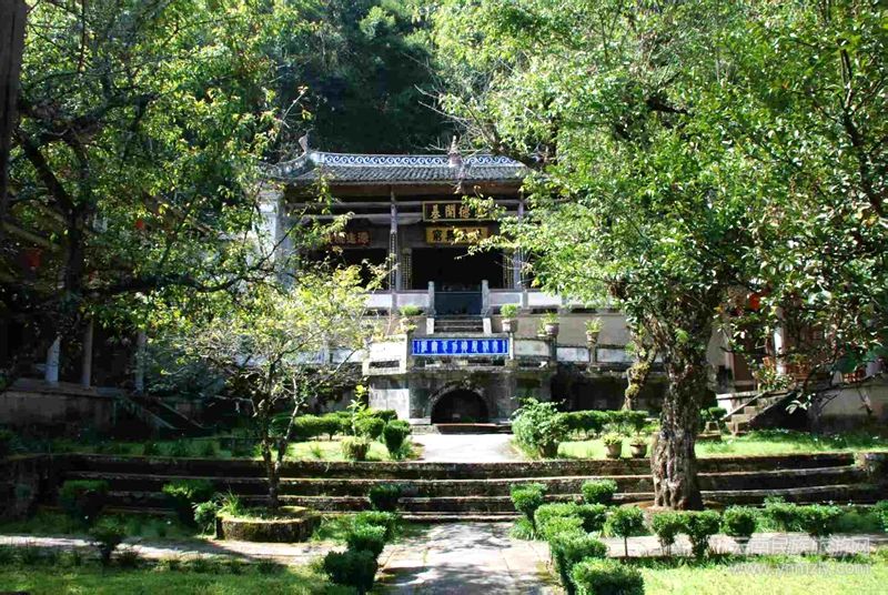 7、楊氏宗祠坐落于大莊(高谷莊)龜山腳,占地2453.1平方米,坐北向南,四周筑有圍墻,呈長方型,整個布局前后分為廣場、園林、主體建筑、后園林等四個部份。楊氏宗祠的主體建筑為典型的四合院,由正殿、廂房、回廊組成。整個建筑布局合理、建筑宏偉、取材講究、修飾精巧,到處是林木蔥郁、鳥語花香的園林景象。楊氏宗祠建于民國十四年(1925),匾聯(lián)已全無,正殿大樓上楊春增先生以《遺規(guī)》、《遺箴》的形式刻寫的六段箴言,作為楊氏家訓(xùn),均清晰可見。楊姓始祖于明萬歷年間移居高谷莊。