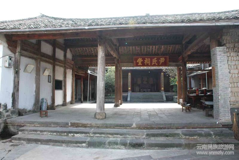 4、尹氏宗祠坐落于尹家巷前,坐南朝北。由正殿、兩廂、大門、月臺、標(biāo)桿(已毀)、池堂組成。尹氏宗祠始建于道光十年(1830),建祠年代繼寸氏宗祠之后,最后一次修繕于民國二十年(1931)。尹氏宗祠眼界開闊,小河水從祠前淌過,宗祠內(nèi)還遺存由族人尹祖瀾于道光十年(1822)書寫的“尹氏祠堂”正書匾一塊。