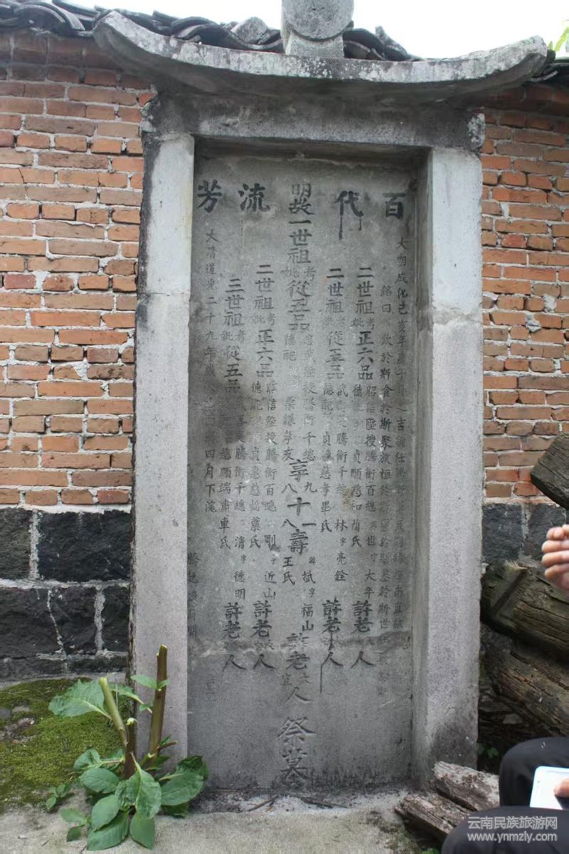 許氏祖塋:位于天成社區(qū)晉家園小區(qū),占地約250㎡,現(xiàn)存墓葬五塚,始修年代不詳,清道光年由后裔合族重修。1997年再次重修一世始祖許斌墓一塚?,F(xiàn)存道光記事碑一塊,記載許斌三征麓川的功勛,以及帶兵修筑騰沖石頭城的經(jīng)過(guò),并記錄了恩賜翰林許爾超回鄉(xiāng)祭祖的信息,還記載其陽(yáng)宅、陰宅同為一地。