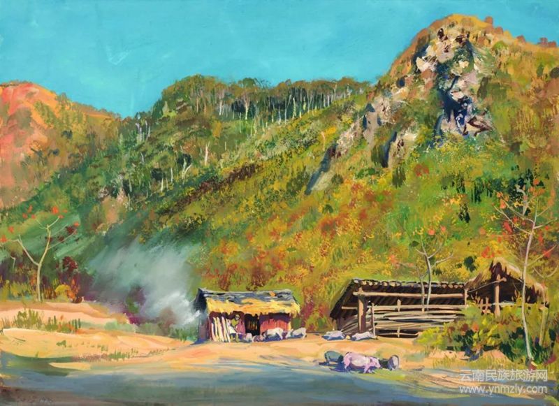 姚鐘華 《邊防哨所的養(yǎng)豬場》 40×54.5cm