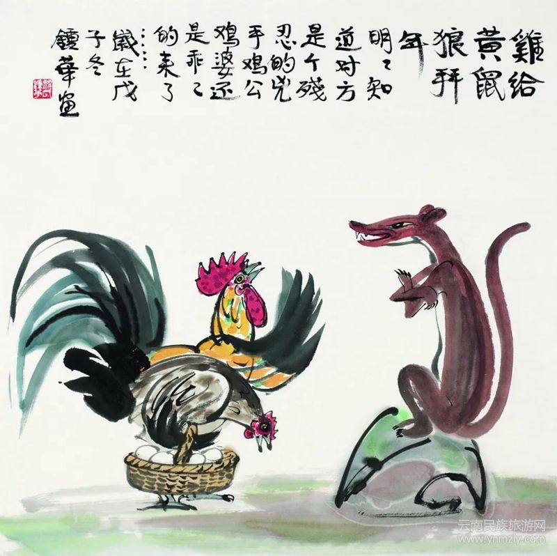 姚鐘華 《雞給黃鼠狼拜年》 69×69cm