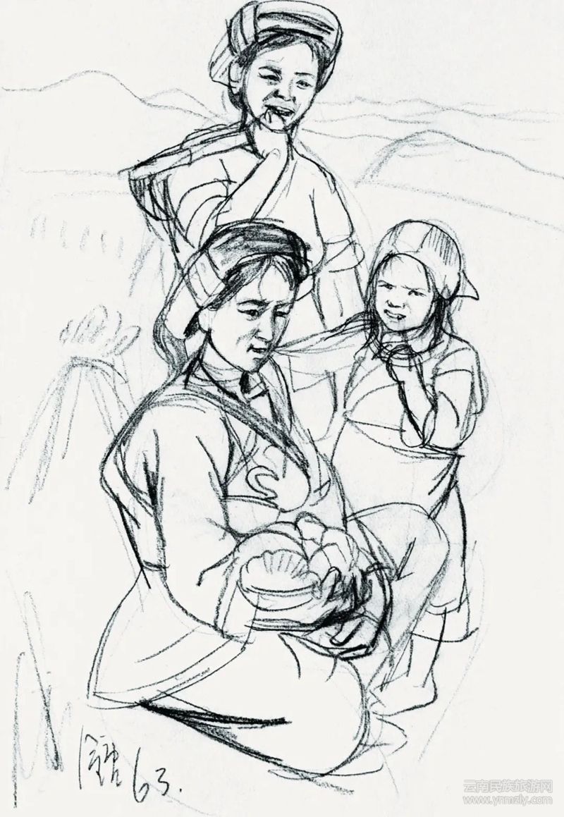 姚鐘華 《蕎麥地里的母女》 39.5×27cm 速寫 1963年