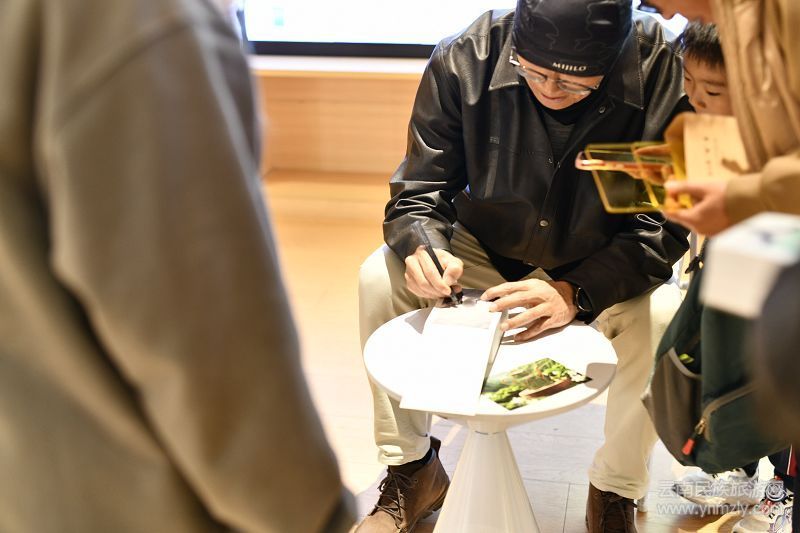 分享會(huì)結(jié)束后,湯海濤留在現(xiàn)場(chǎng),為讀者簽名、合影。隊(duì)伍中,有年輕的藝術(shù)學(xué)生,有帶孩子前來(lái)感受藝術(shù)氛圍的家長(zhǎng),也有專程從外地趕來(lái)的投稿人。有人請(qǐng)他寫下寄語(yǔ),有人靜靜站在一旁,翻閱日歷中屬于自己或陌生人的那一頁(yè)。