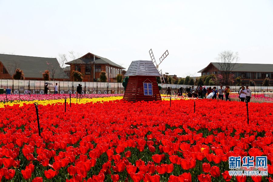 昆明撈魚河濕地公園郁金香盛放迎春