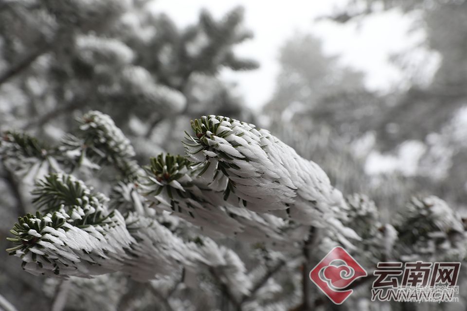 昆明轎子山出現(xiàn)霧凇奇觀