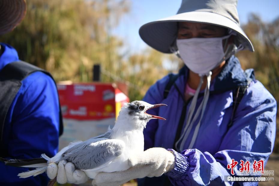昆明對過冬紅嘴鷗進行環(huán)志調(diào)查 監(jiān)測遷徙路線
