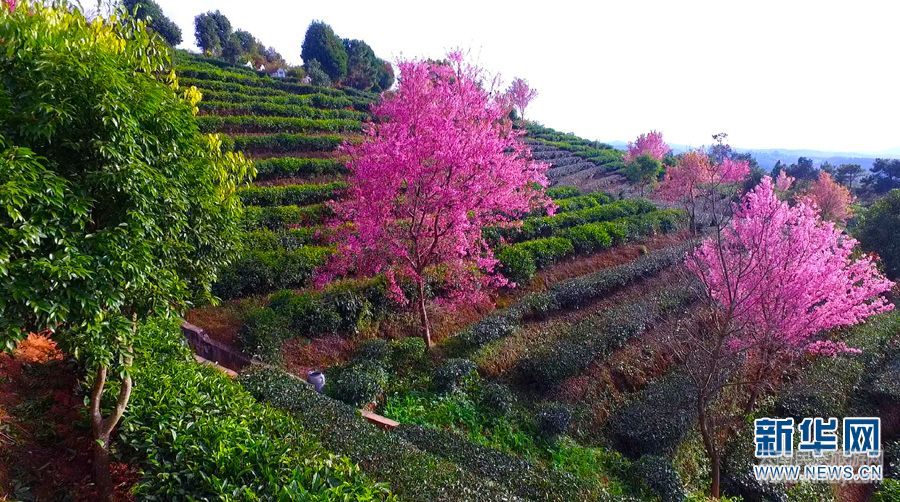 【“飛閱”中國】航拍普洱茶山櫻花盛開 感受花香、茶香交